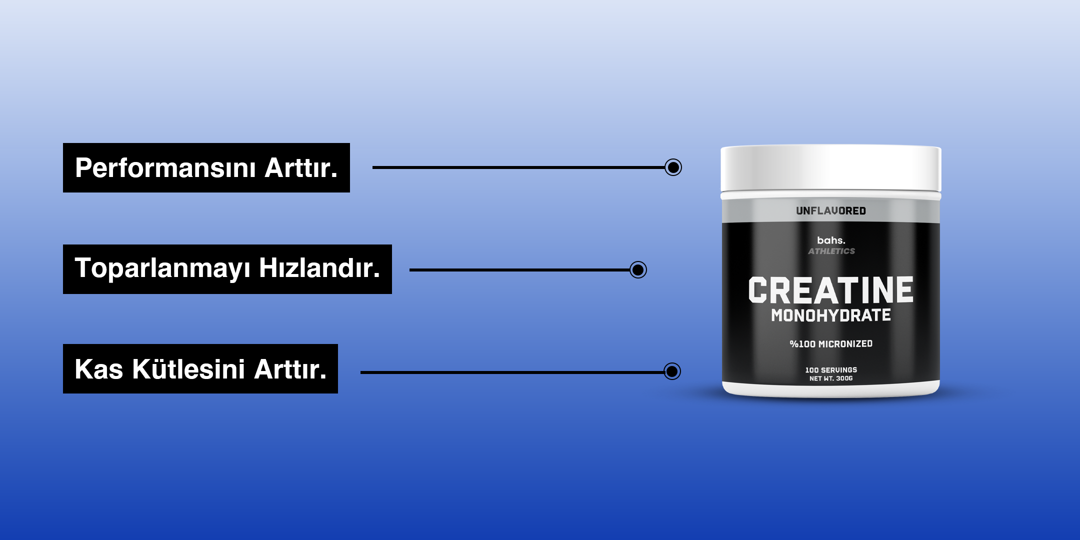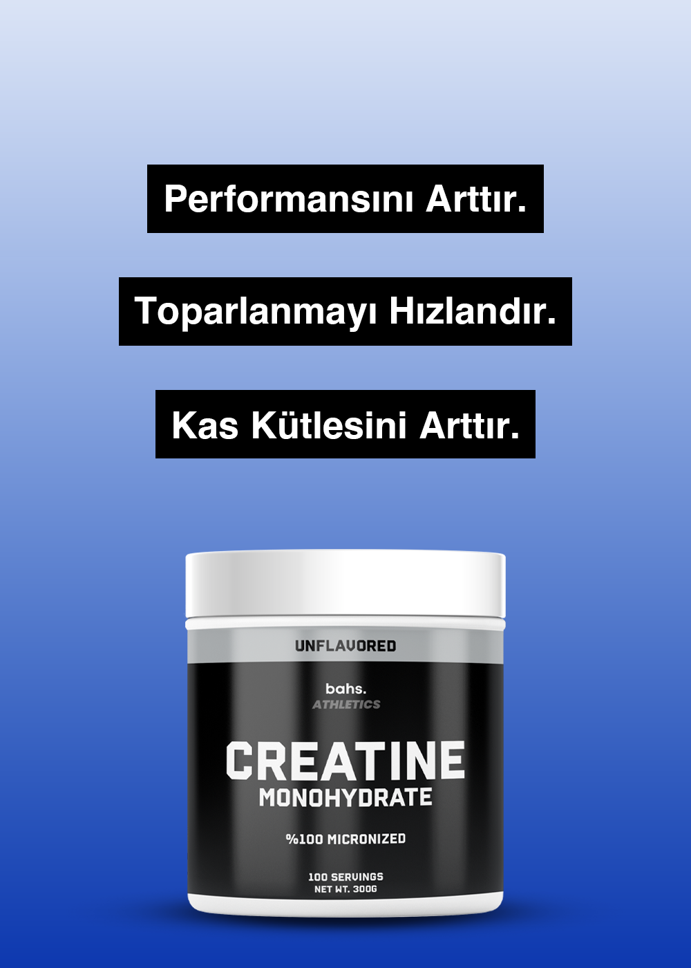%100 saf Kreatin Monohidrat içeriğiyle antrenman performansını artırmaya, kas gücünü desteklemeye ve toparlanma sürecini hızlandırmaya yardımcı olan bahs. Kreatin şimdi seninle!